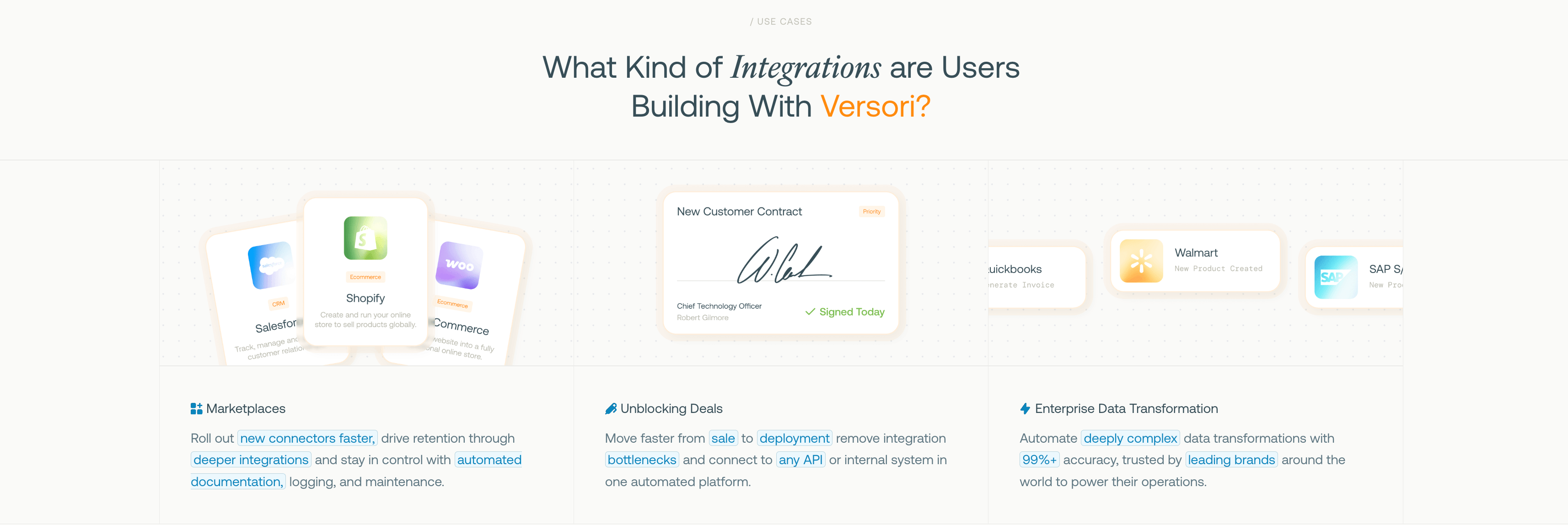 To make that clearer, we’ve highlighted the most common use cases we see across Versori: